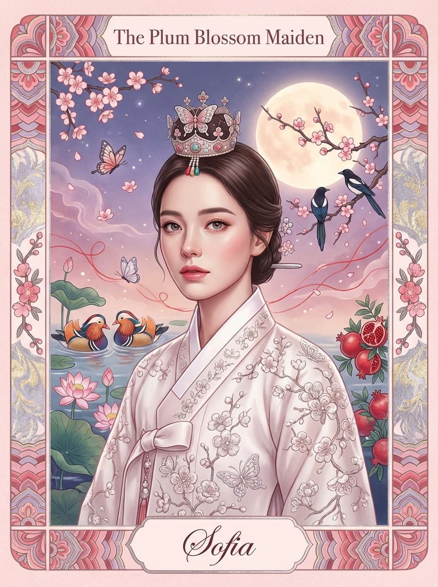 Delicate as plum blossoms in moonlight, radiating warmth and grace. Deep love fortune and beautiful connections bloom at every turn.